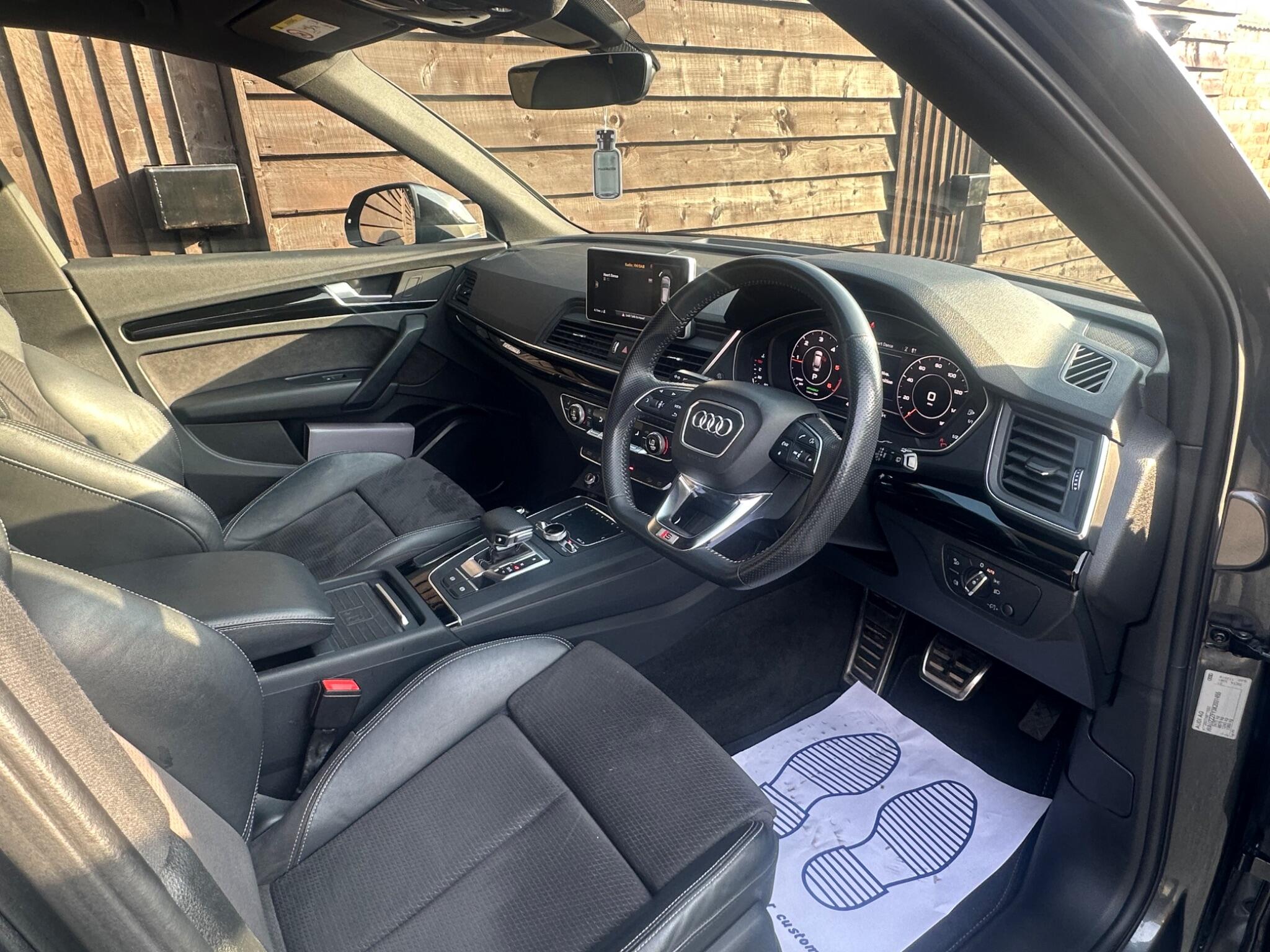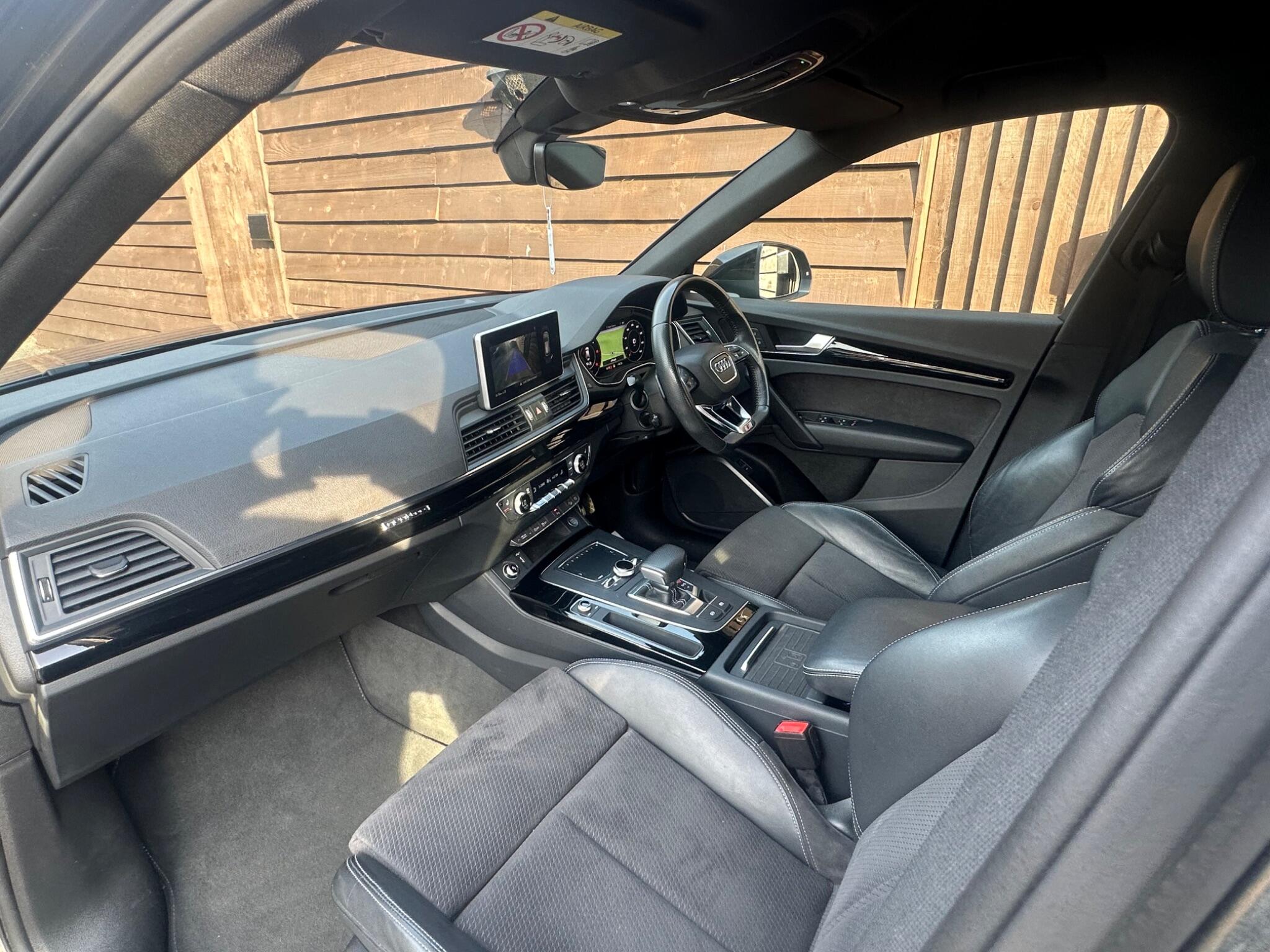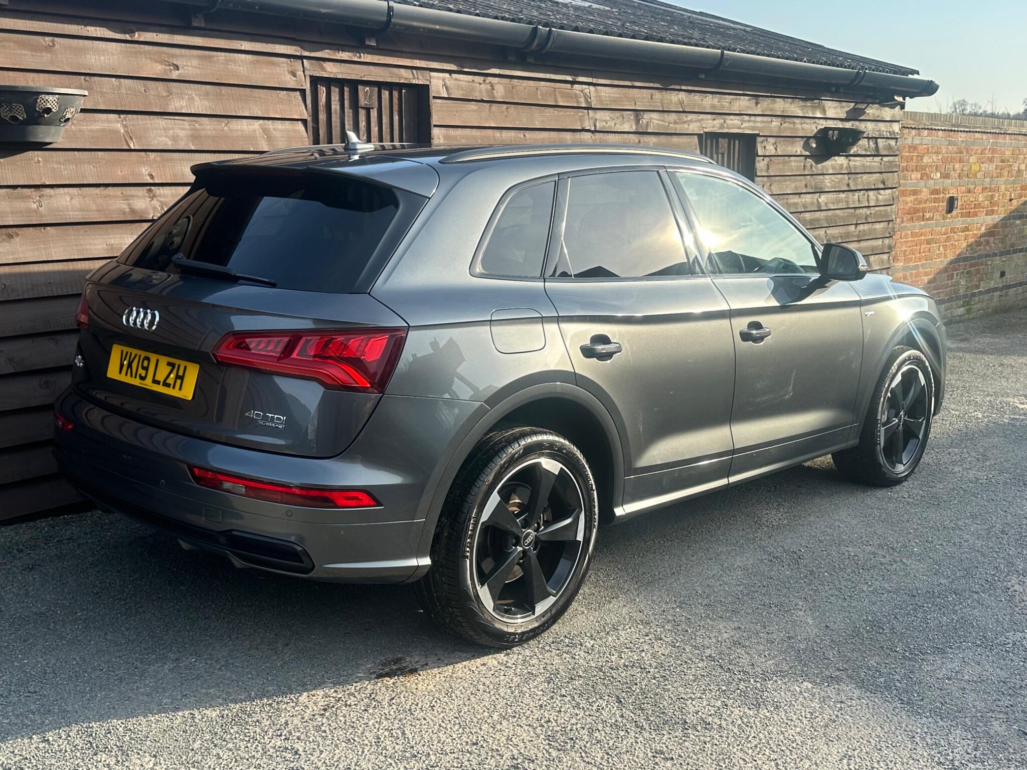 This 2019 Audi Q5 TDI Black Edition offers a superb blend of style and performance, boasting a powerful 2.0 litre diesel engine and a sophisticated four wheel drive system. As a Euro 6 compliant vehicle, it meets stringent emission standards. This Black Edition model comes equipped with the desirable Technology Package, which includes convenient wireless phone charging, and a Light and Rain Sensor that automatically activates the headlights. You'll also appreciate the striking LED headlights with dynamic rear indicators and the comfort of Deluxe 3-Zone Climate Control, ensuring a pleasant environment for all occupants.