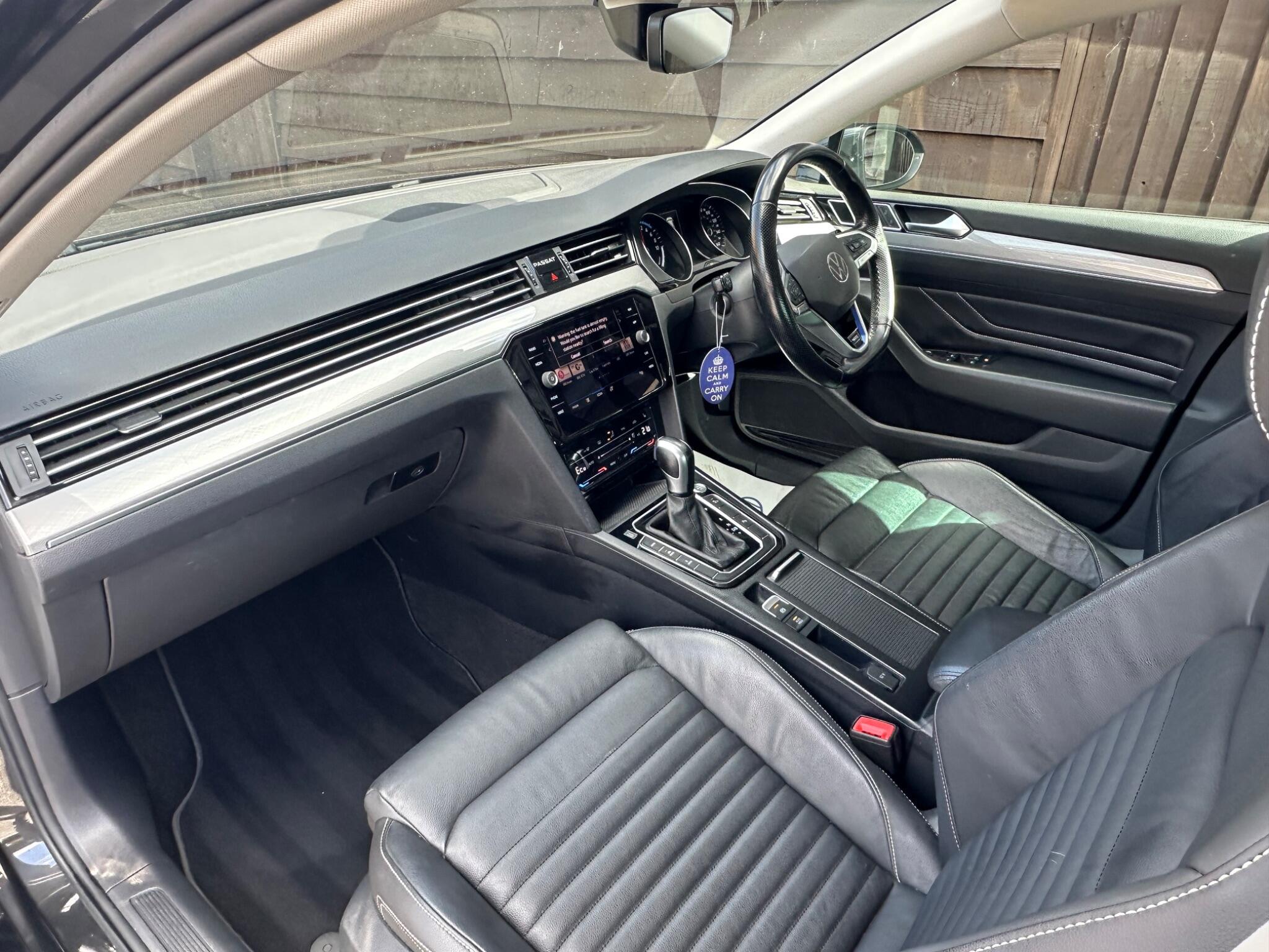 This 2021 Volkswagen Passat TSI GTE presents a compelling proposition with its full service history, most recently serviced on 31st March 2026 at 132,000 miles, and a remaining six month warranty for your peace of mind. This Euro 6 compliant, 1.4 litre petrol plug-in hybrid model, in the GTE trim, has been owned by only one careful owner. It comes equipped with advanced All LED Headlights featuring reflector technology, and a convenient three zone climate control air conditioning system. Navigating tight spaces is made easier with front and rear parking sensors, while the dusk sensor automatically activates the driving lights. For comfortable journeys, Adaptive Cruise Control is also included.